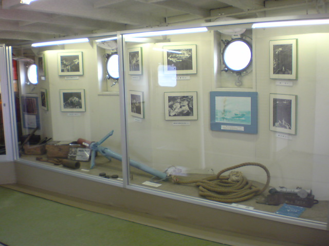 狭い船内は、少し改造されてて展示コーナーになってますね。