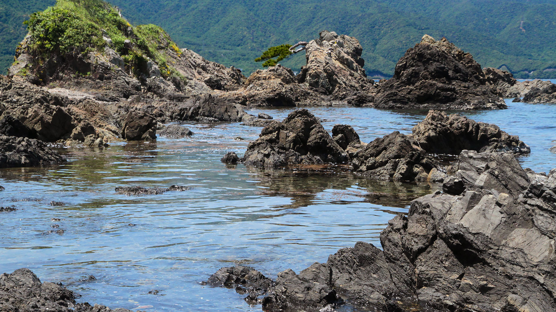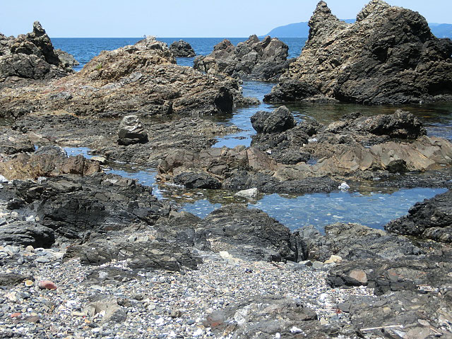 日本海らしい、ゴツゴツした岩場がいっぱい。
