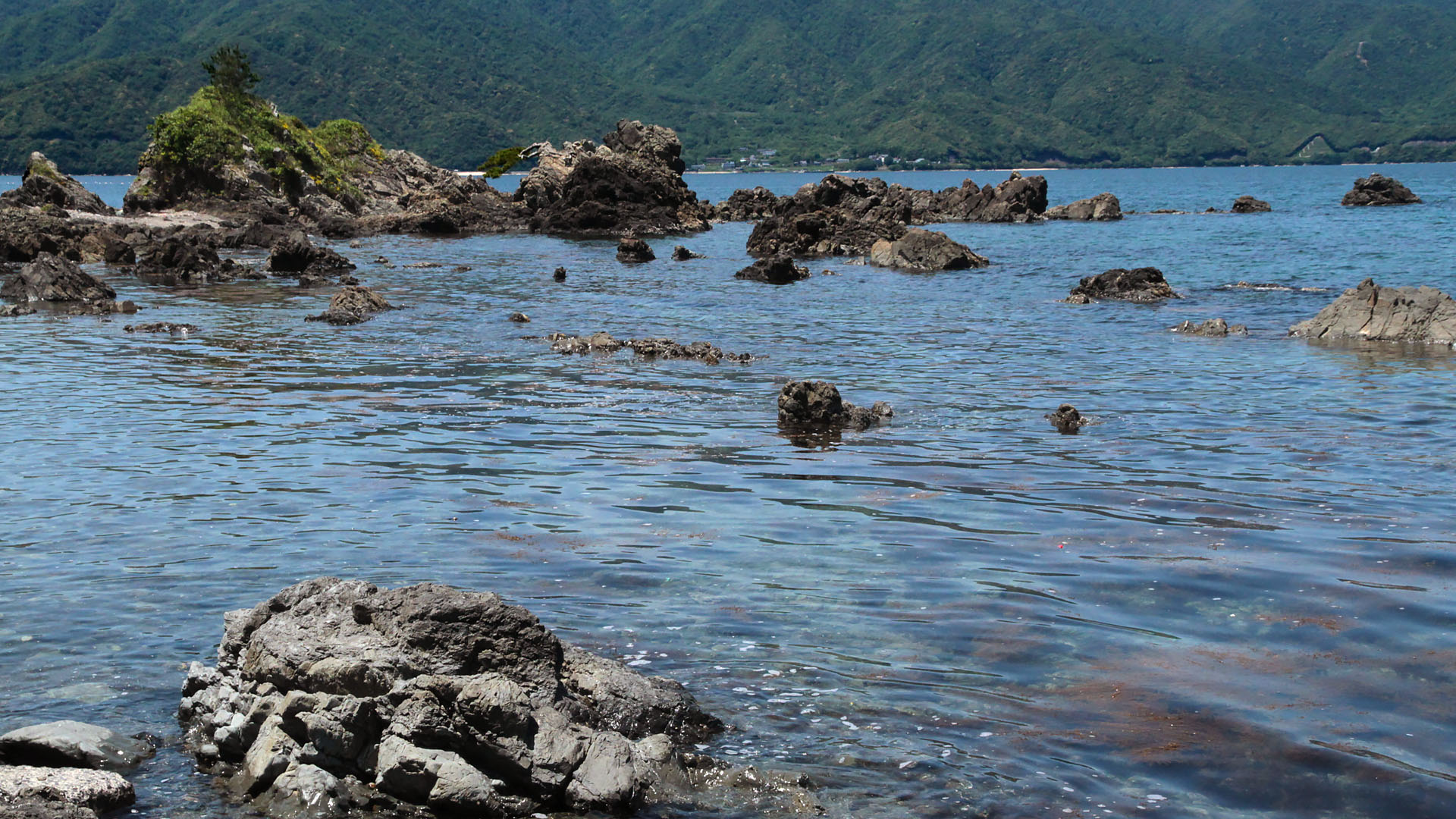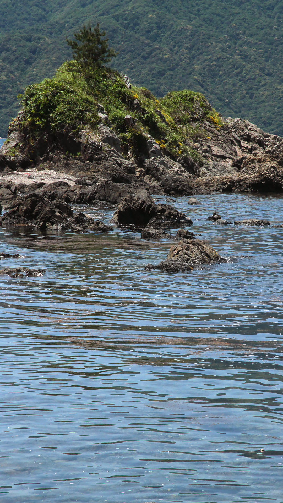 大きい岩には草が生えてて島みたい!