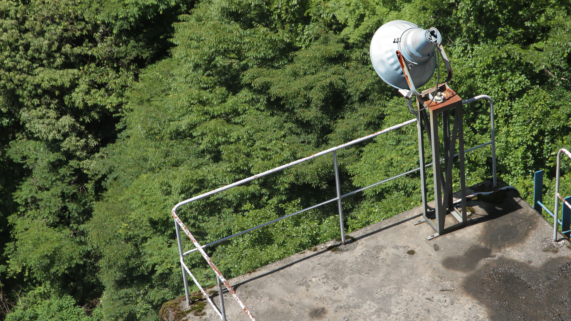下を照らすライト あそこに登ったら、かなり怖そう・・