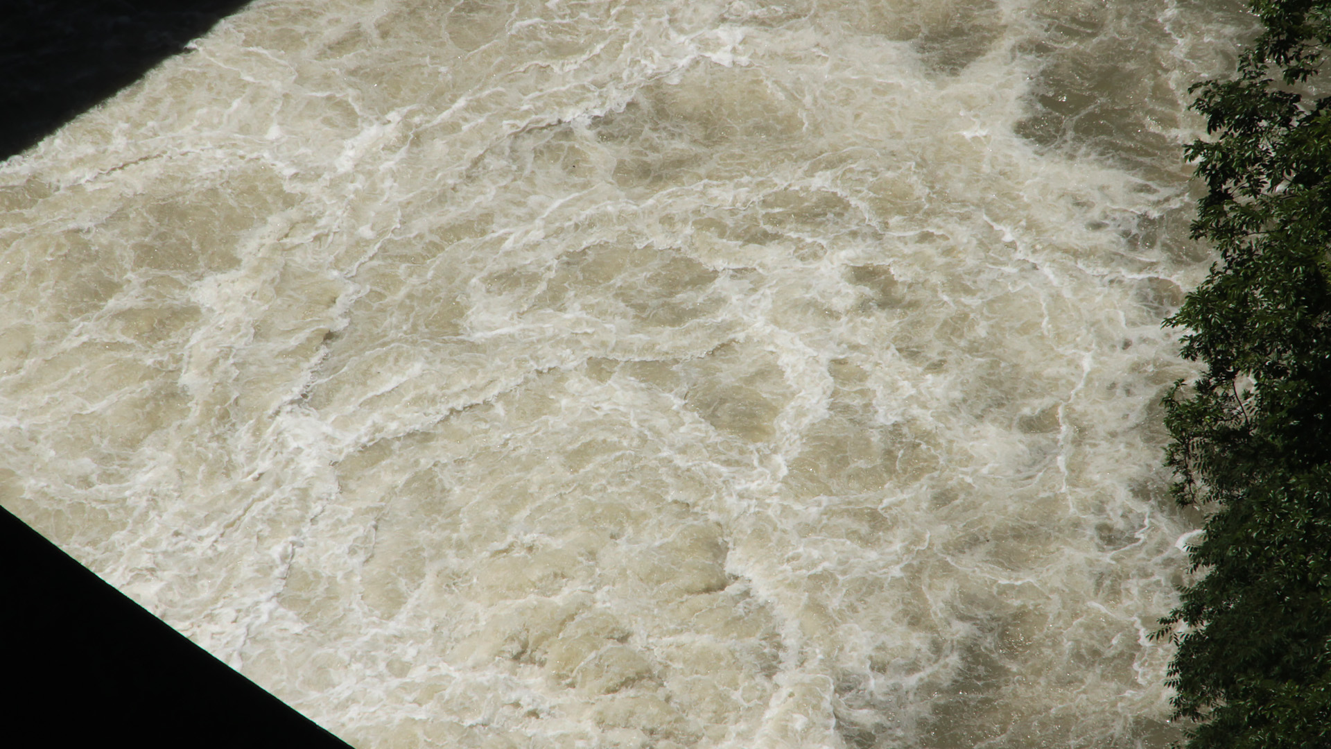 水が溜まったダム湖に強風で波ができ、まるで海みたい!