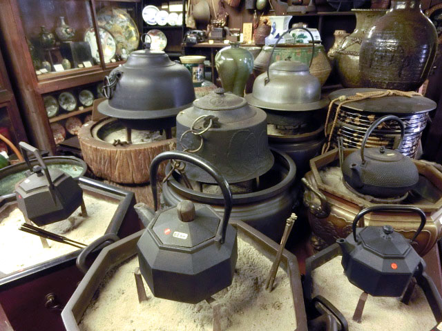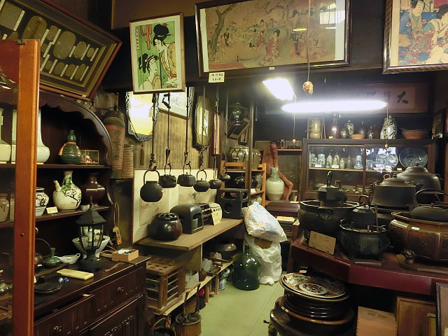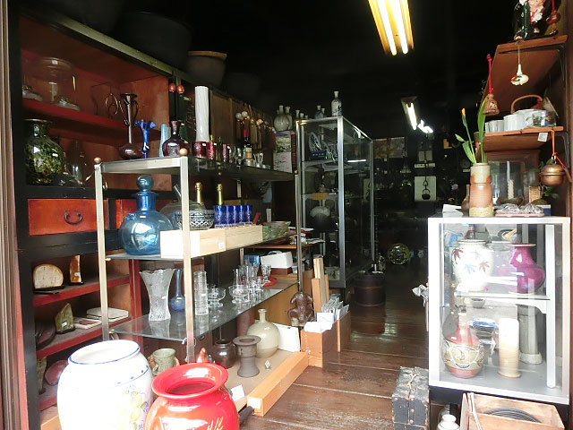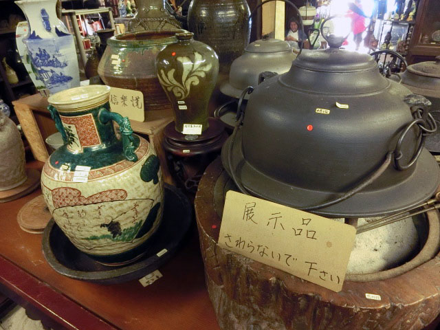 店頭には古い壺やら、骨董品が並べられて値段がとても安いし、中には無料のものも・・。