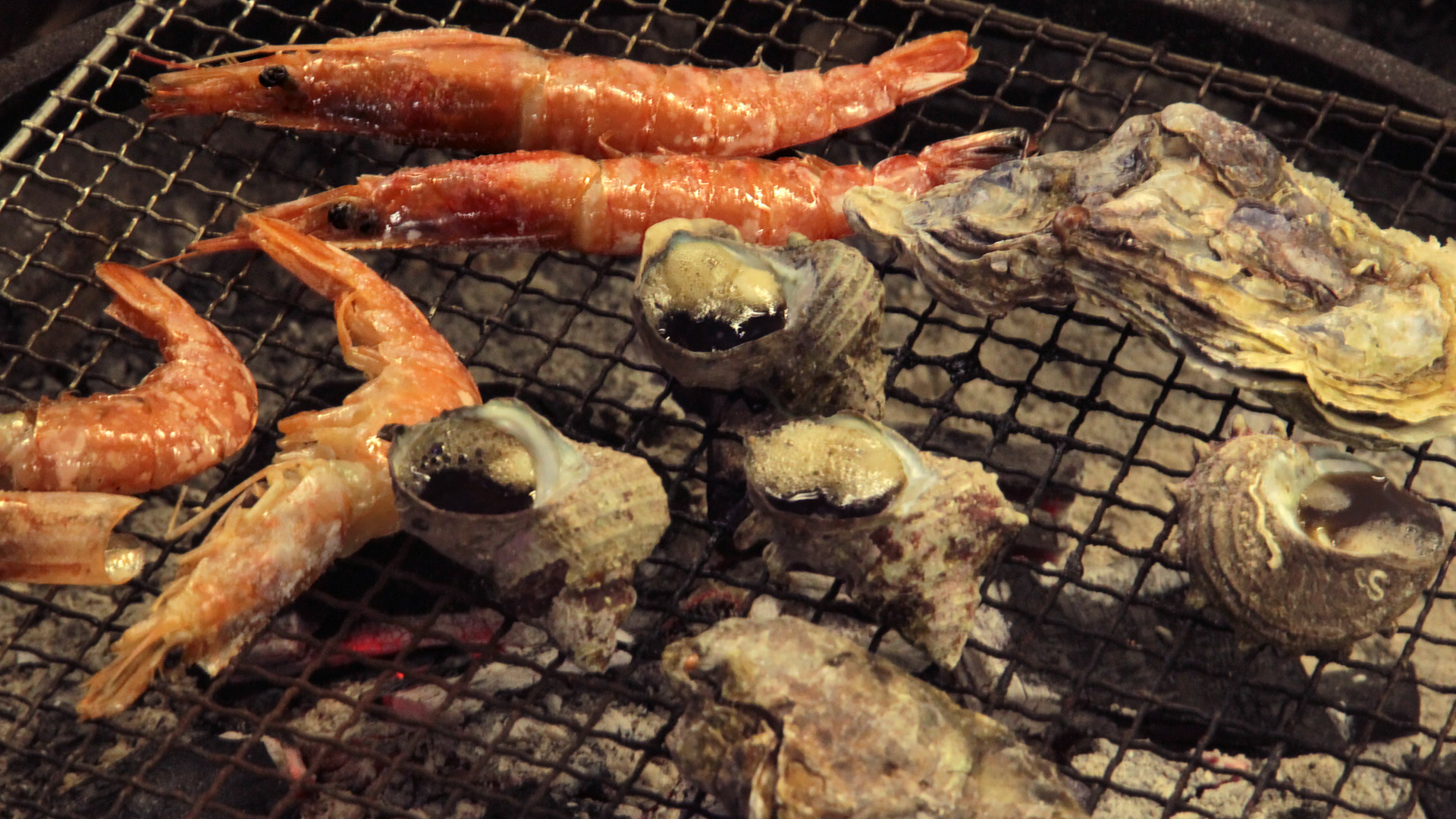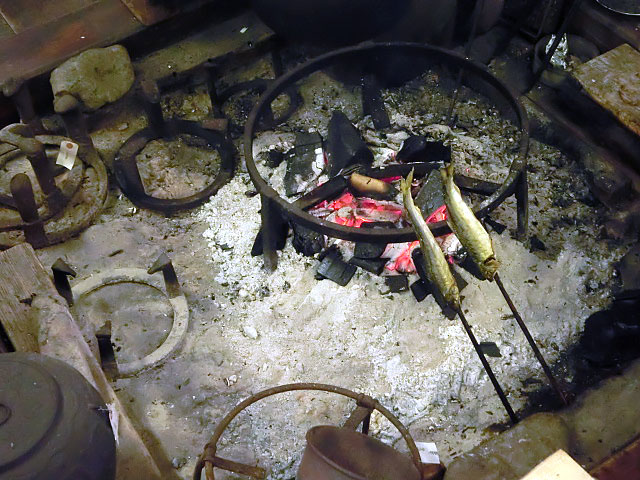 囲炉裏には炭が! ちなみに魚は何日も焼いて、ペラペラだって(汗
