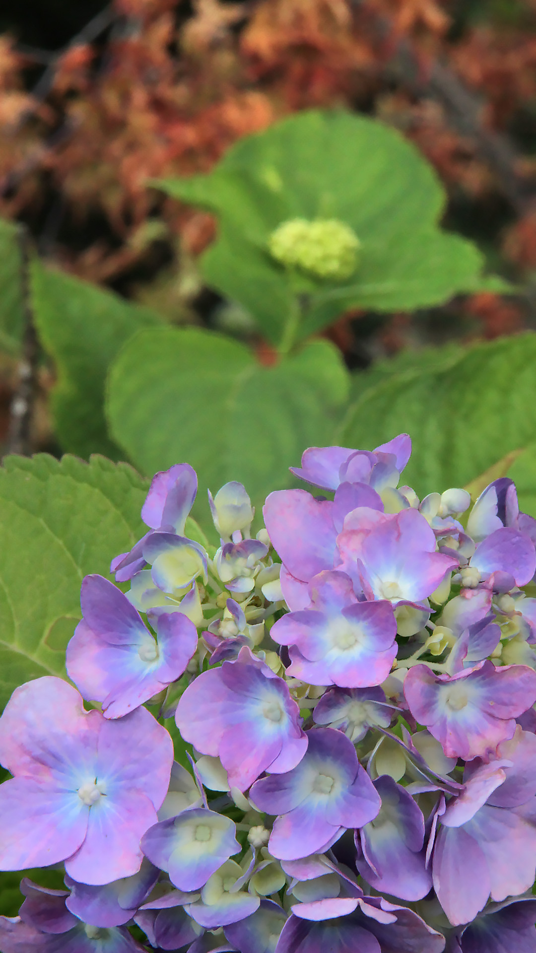 紫陽花の背景に紅葉・・