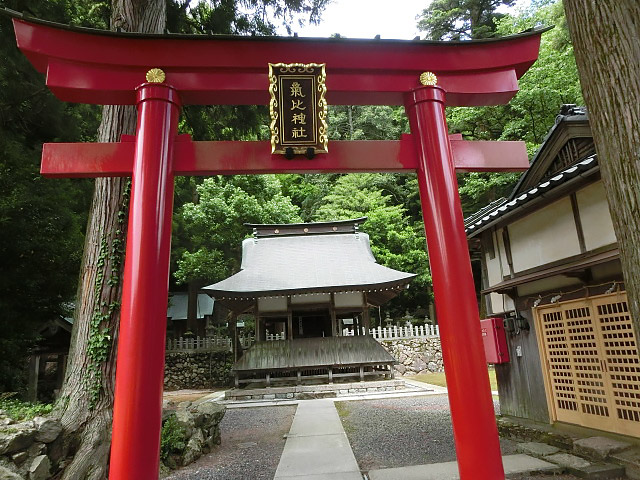 ちょうど赤い鳥居が目立つ、気比神社。
