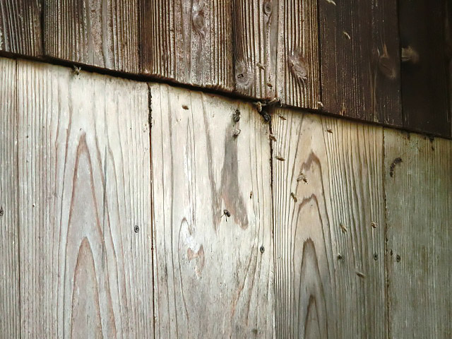 木の板の間から、無数の蜂が出てきている!