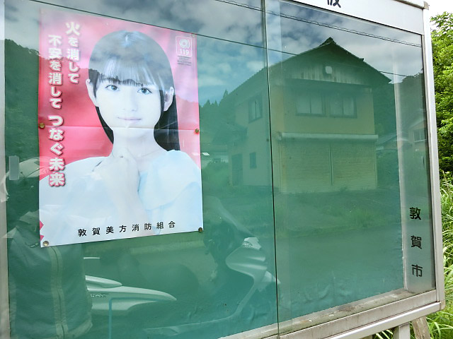 掲示板 敦賀市って書いてある! 山の中なのに?Σ( ̄□ ̄;)