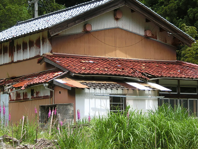 民家 屋根が崩れている・・