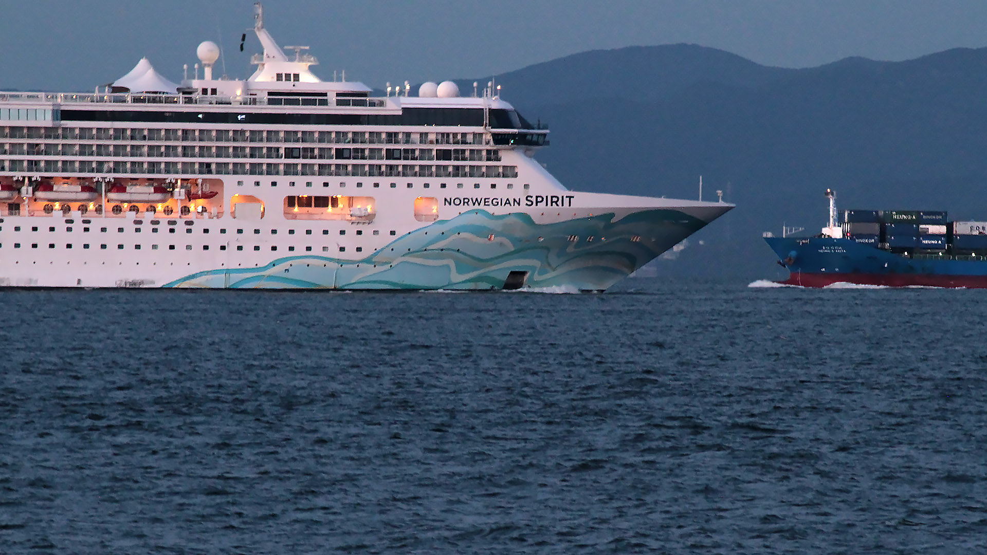 豪華客船とコンテナ船がぶつかる!(;´Д`) コンテナ船が小さく見える・・