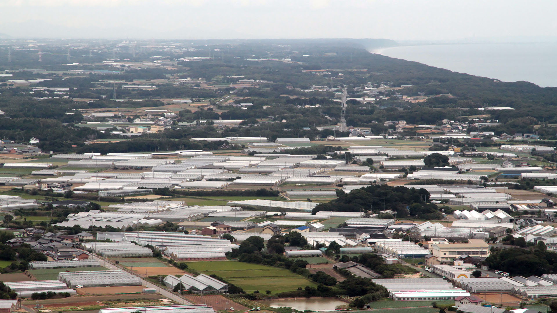何度も撮ってるが、いっぱいのビニールハウス! メロンだけでなく花も栽培か