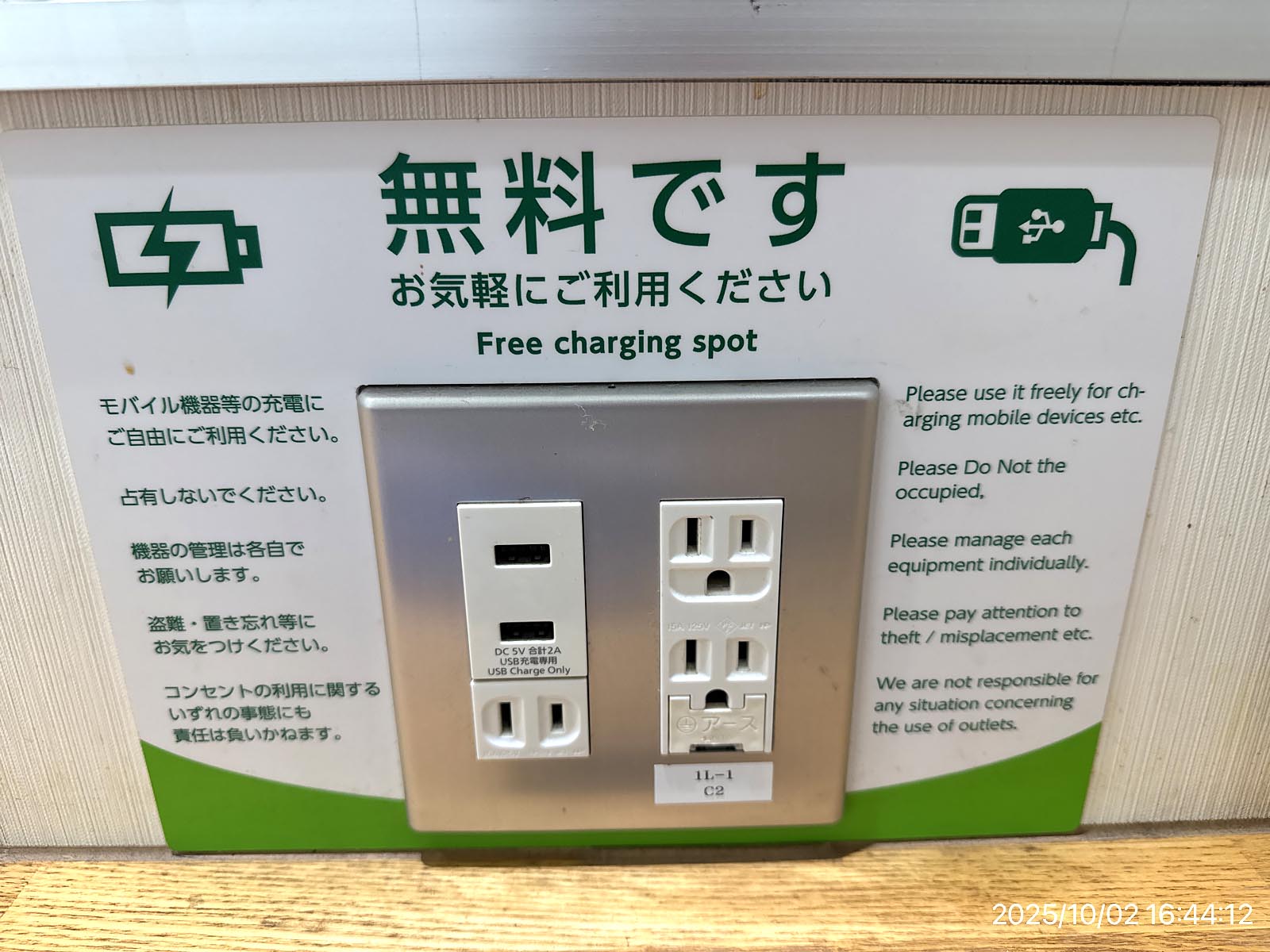 無料の電源が! もっと早く行って欲しい(汗 ただUSBあるのに、今主流のタイプCが無いのは・・(汗