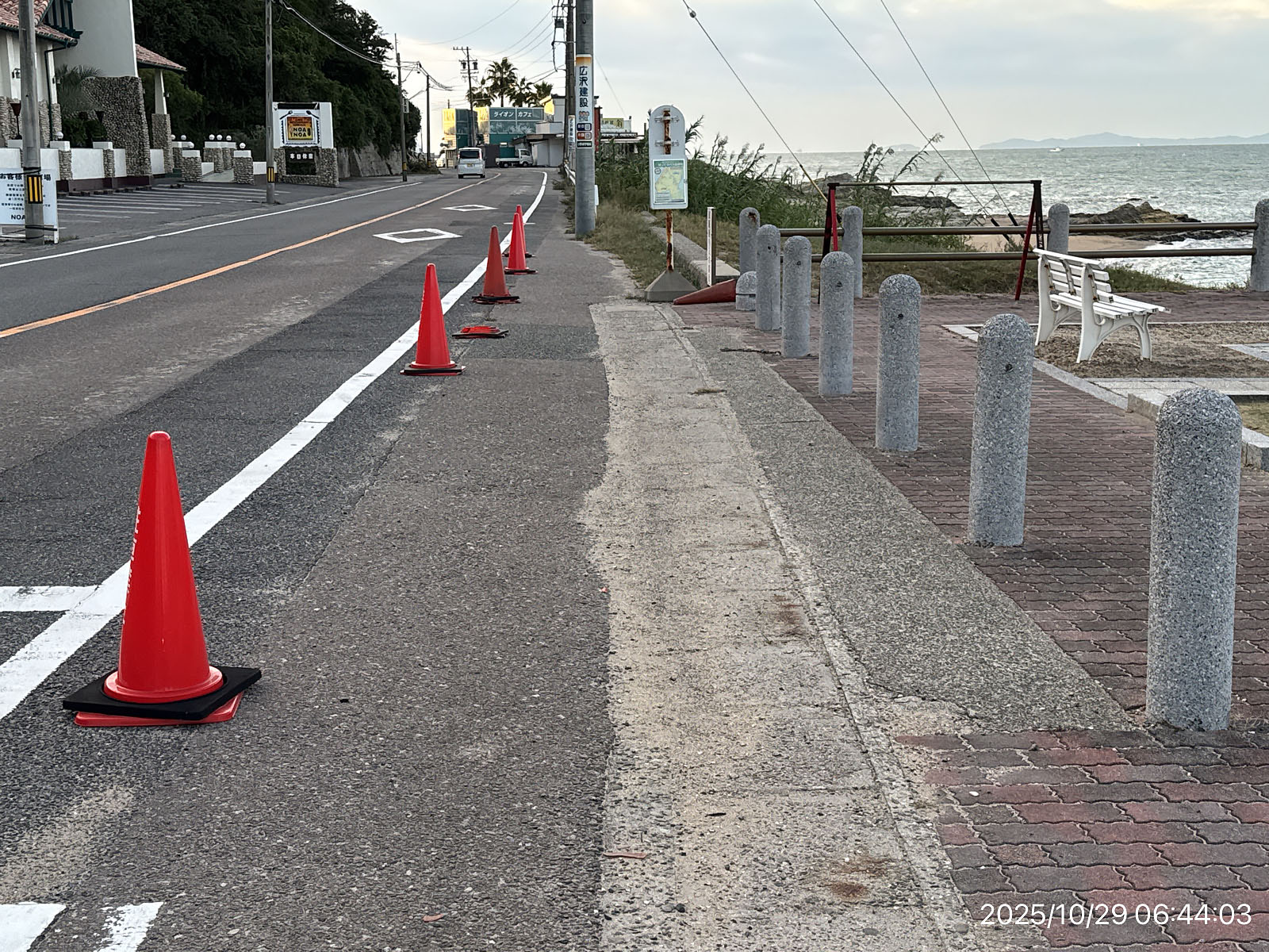 ここを曲がると海沿いの道ですが、調べてみたら地元の人しか行かないような、対向するのも大変そうな細い道・・。