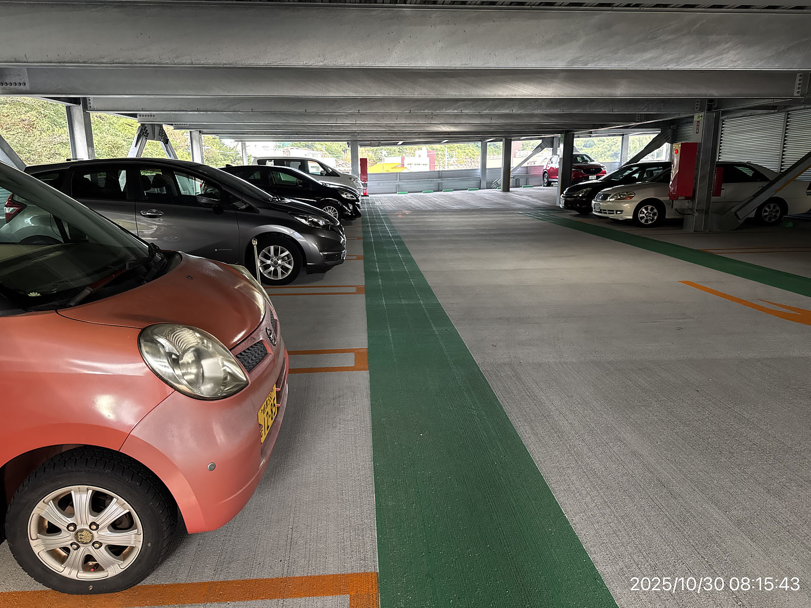 立体駐車場は嫌だなあと思いつつ、前の車も駐車場に入るので後をつけていきました。