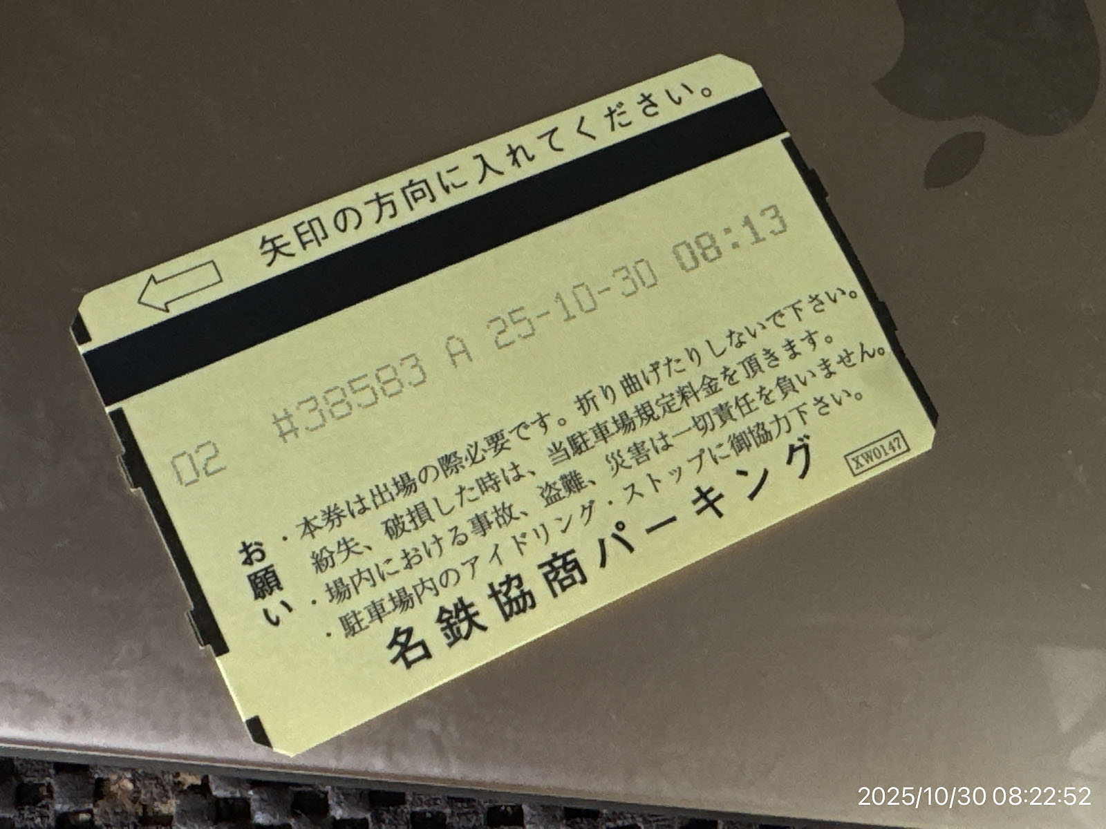 なくしちゃいけない駐車券 なくすと自動的に料金は2000円(;´д`)