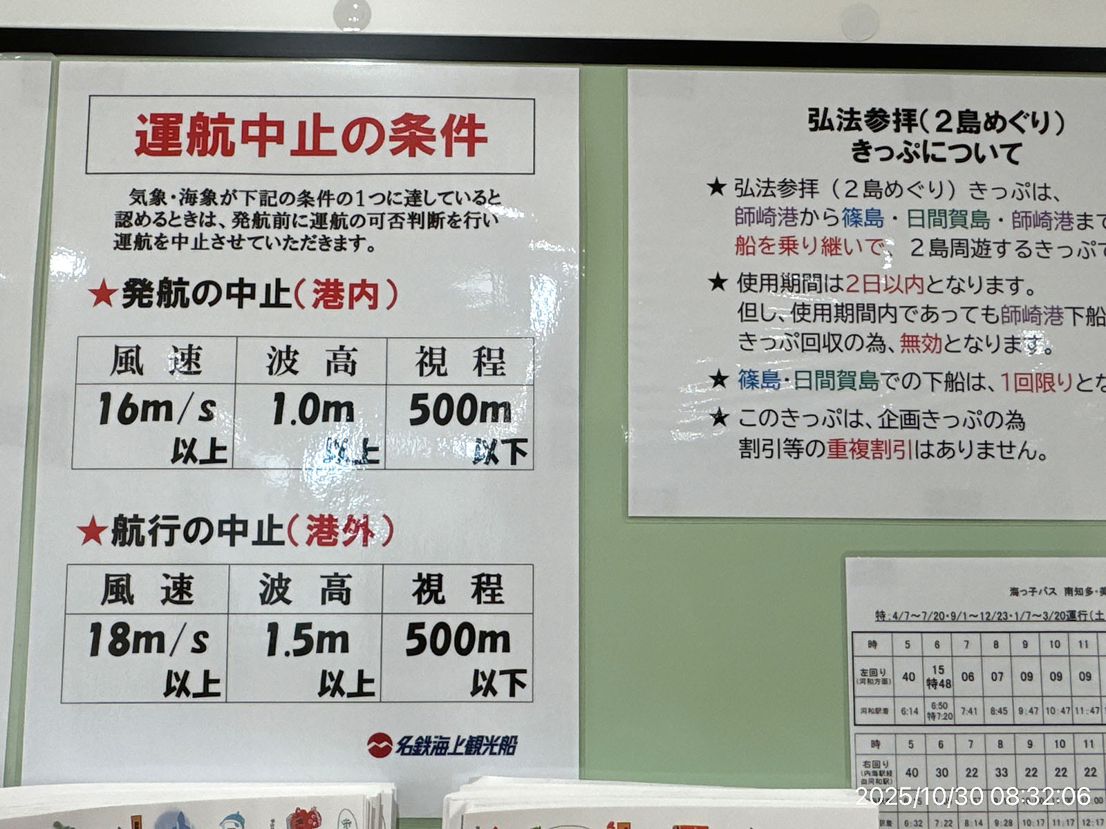 船のダイヤ 日間賀島は2つ乗り場がある!