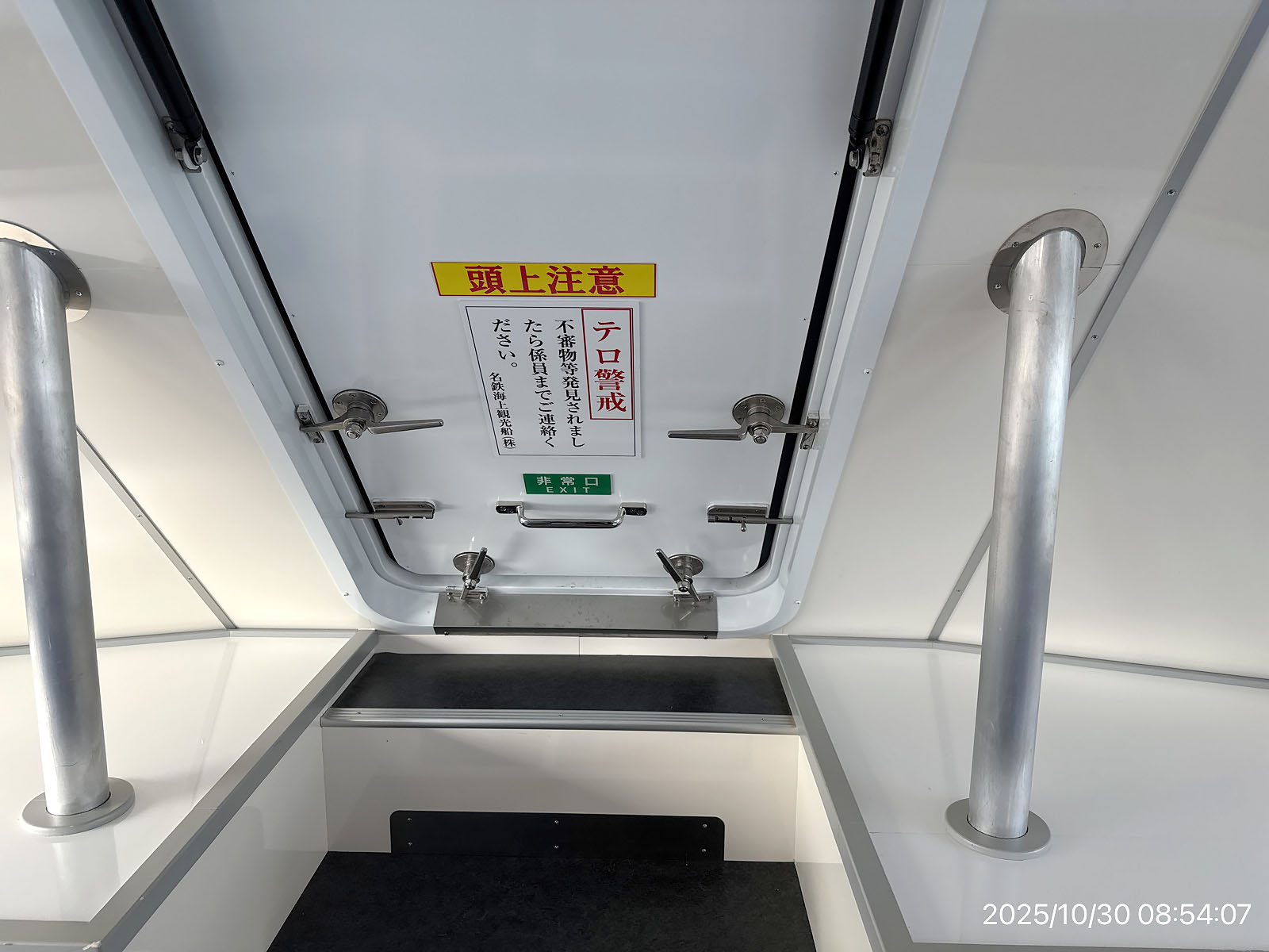 走行中でもドアは開けれるらしく、ここから外に出て録画したけど、後ろしか撮れません。