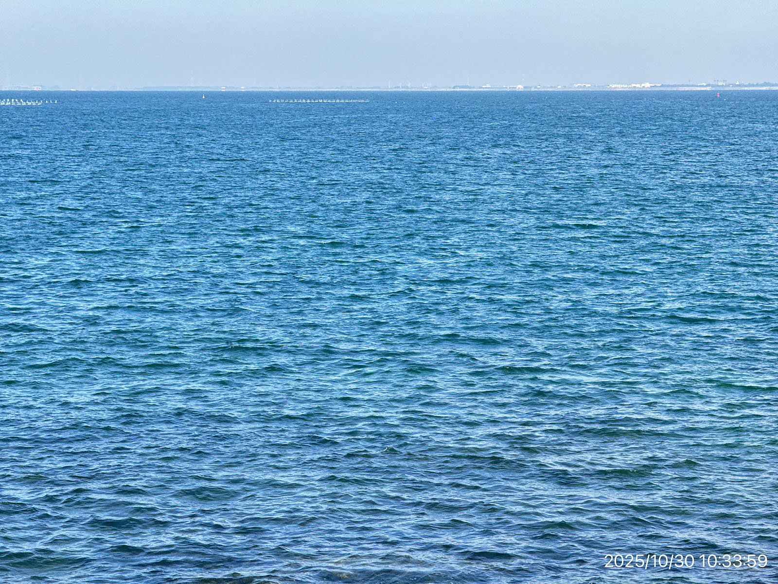 見渡す限りの海ですが、狭い国だし本土から近いから、普通に陸地が見える。