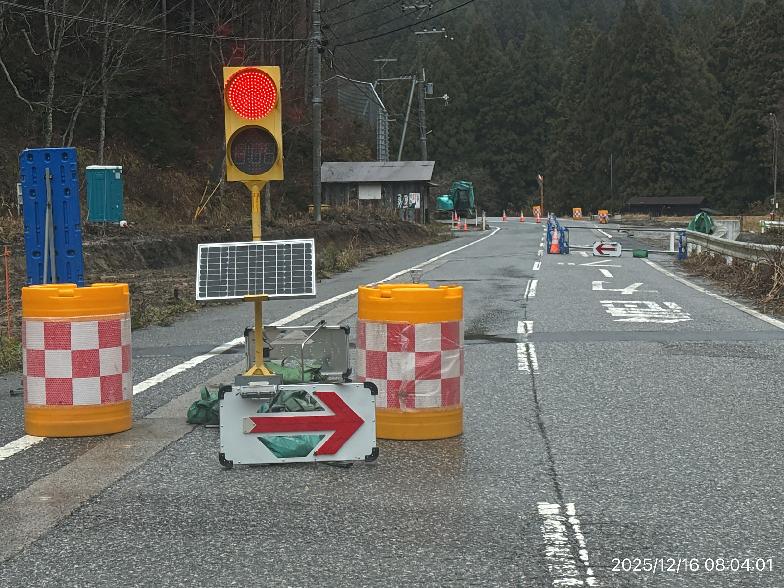 横山ダムを通過し、橋を渡ると朝から交互通行。