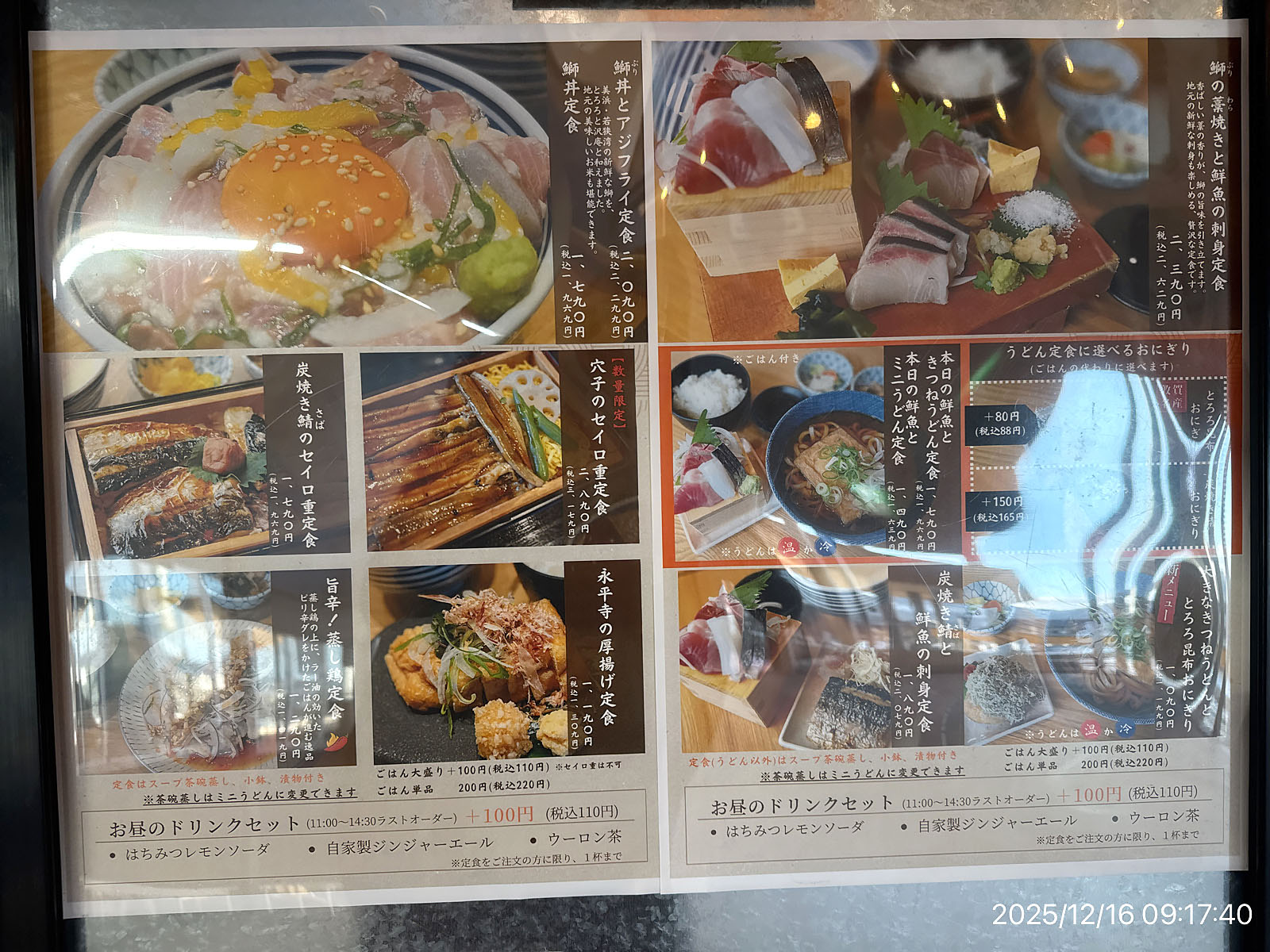 メニュー2 笑焼きとか面白そうなものもあるが・・ 唯一食べれそうなのはブリ丼ぐらいか