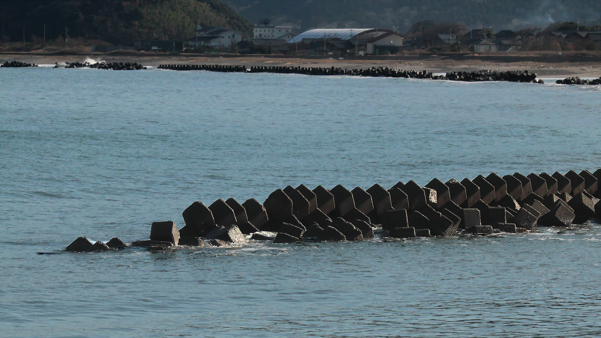 ずっと続く波消しブロック 波が強いエリアなのか