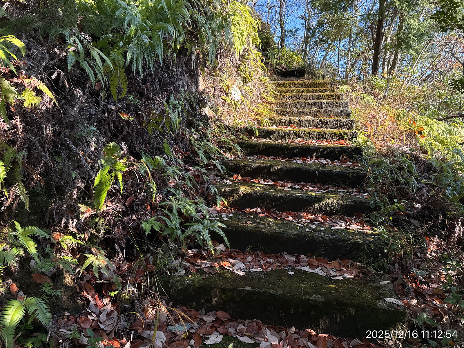 やたらと傾いた階段 苔で滑って崖下へ・・(;´д`)