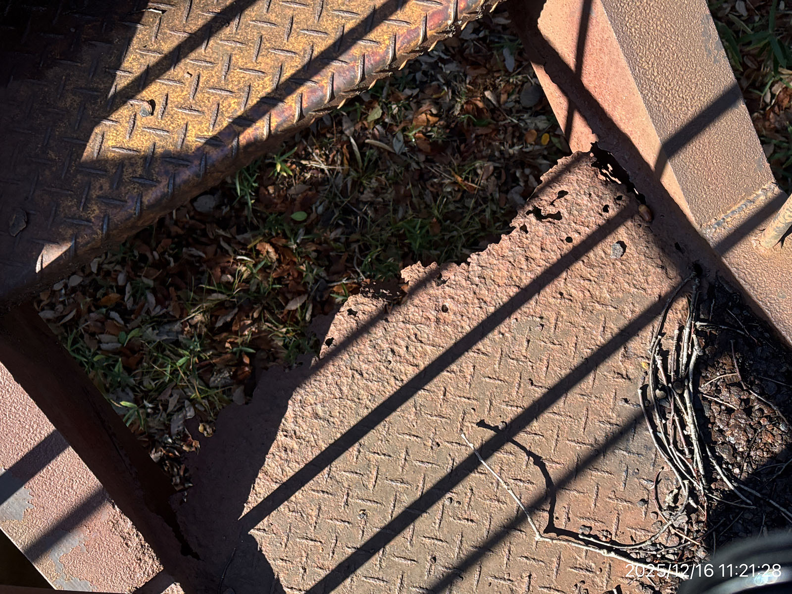 鉄製の階段だけど、錆びててボロボロで朽ちているところも・・。